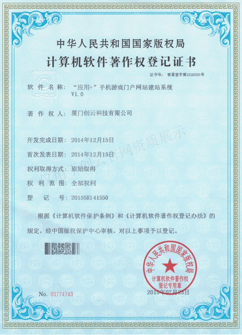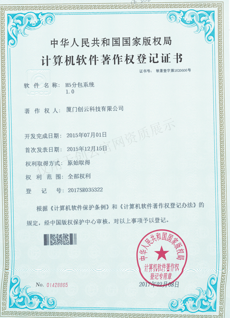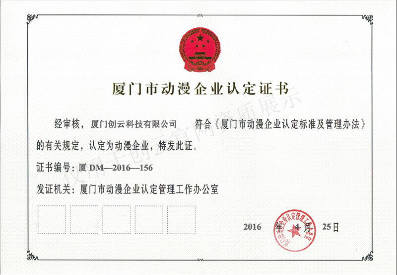 廈門市動漫企業(yè)認(rèn)定證書